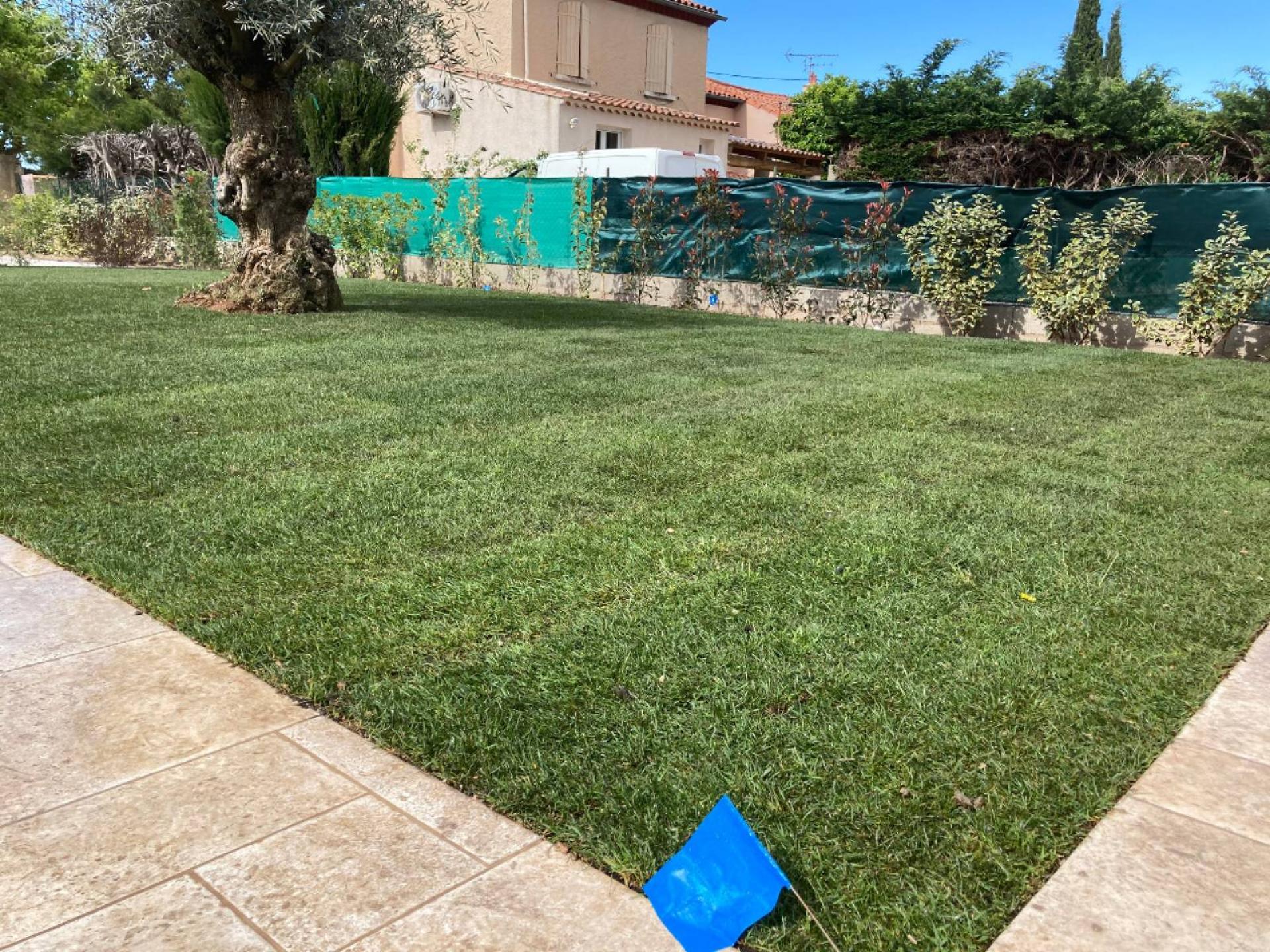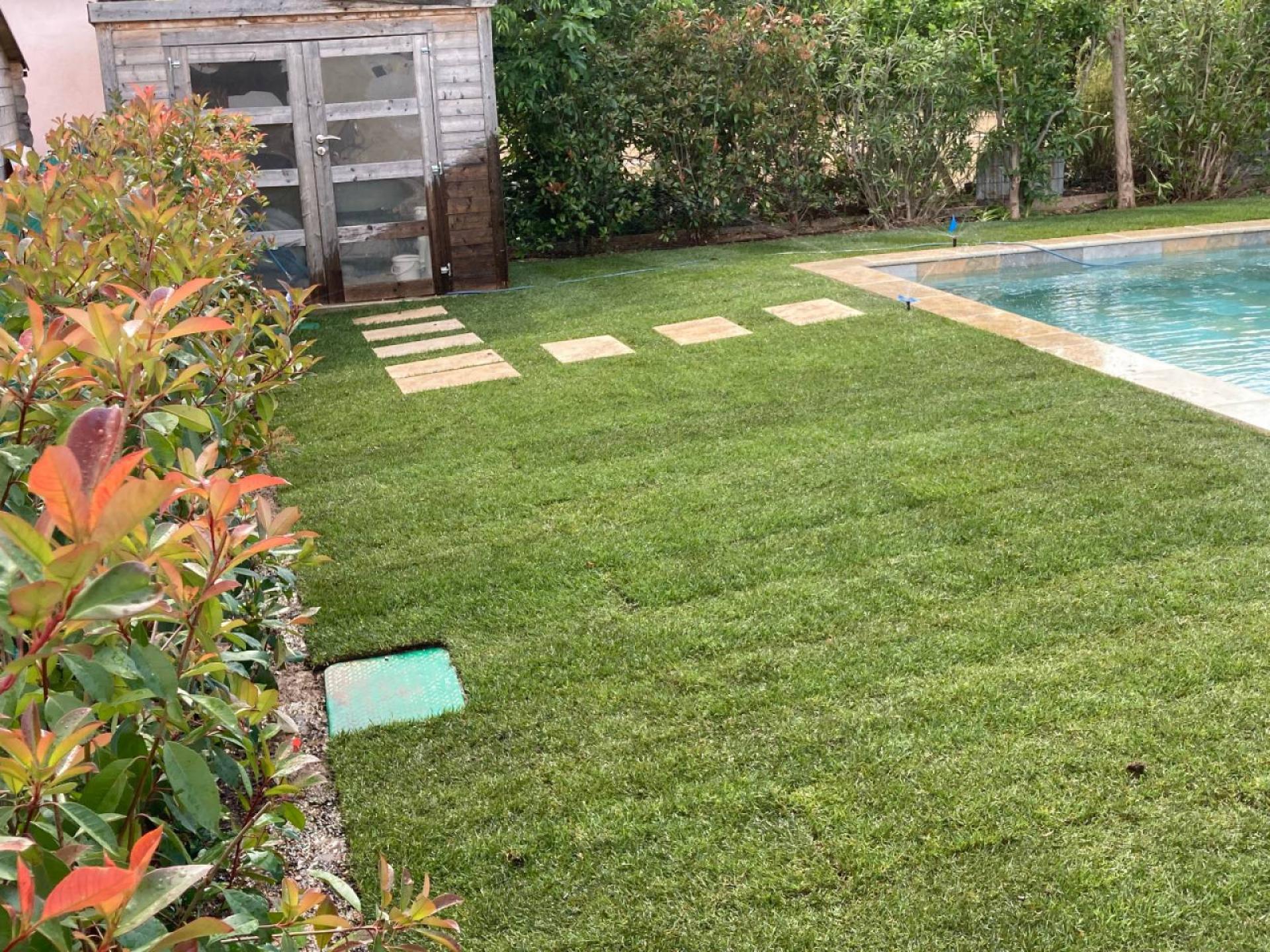 - Pose d'un gazon en rouleau de notre fournisseur Aixogreen à Ventabren