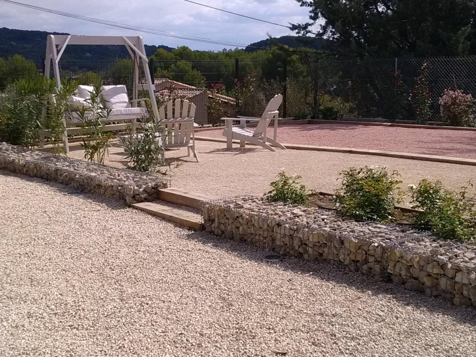 Les clients dont l'habitation est située à Eguilles, ont sollicité Aménagement Entretien Paysager AEP pour aménager un jeu de boules dans leur jardin. Nous devions intégrer le jeu de boules dans un environnement sans entretien, tout en conservant un caractère contemporain, laissant la possibilité d'une aire de jeux pour les enfants à proximité.