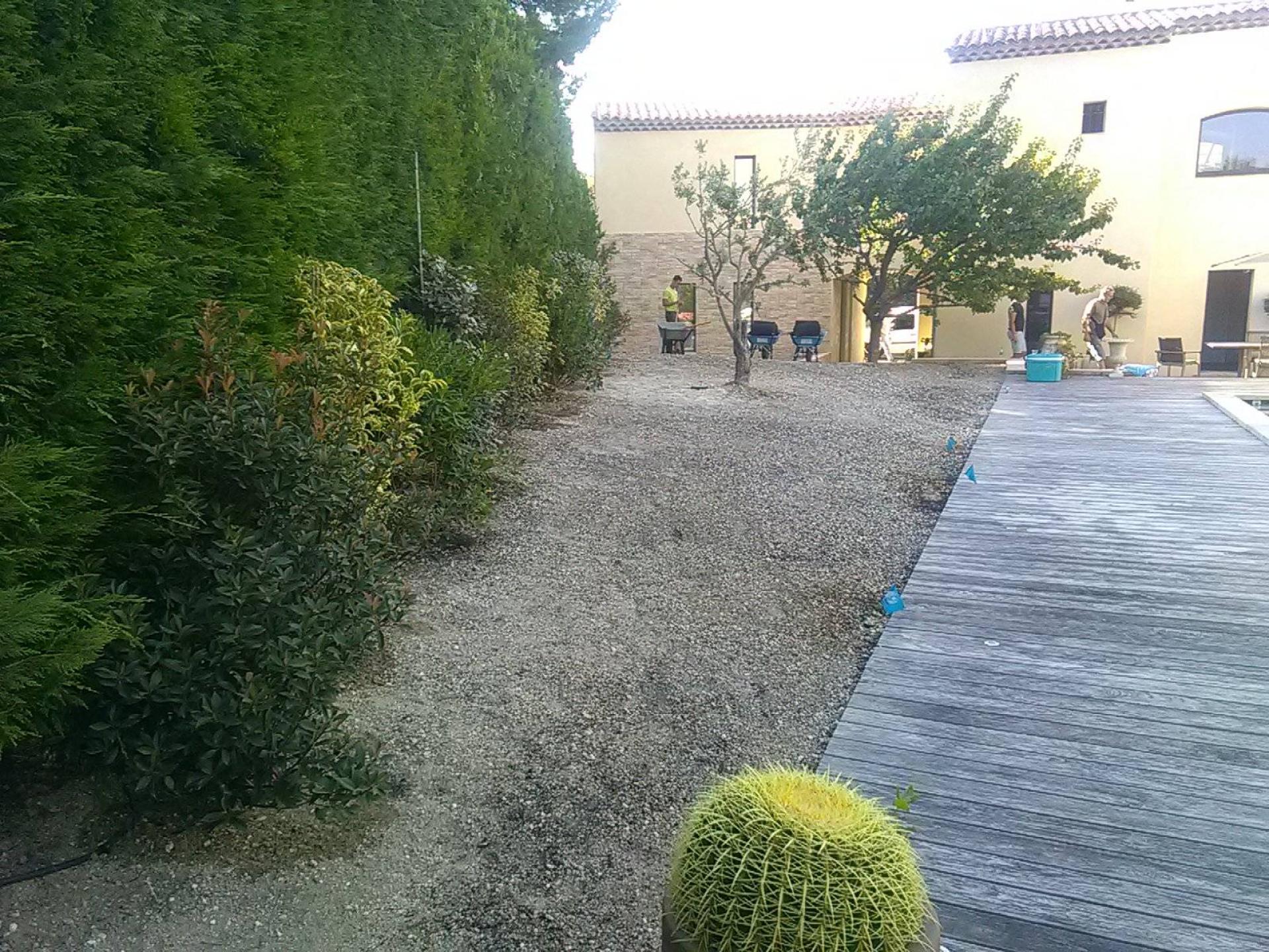 - la pose d’un arrosage intégré programmable afin d’arroser le gazon et un goutte à goutte