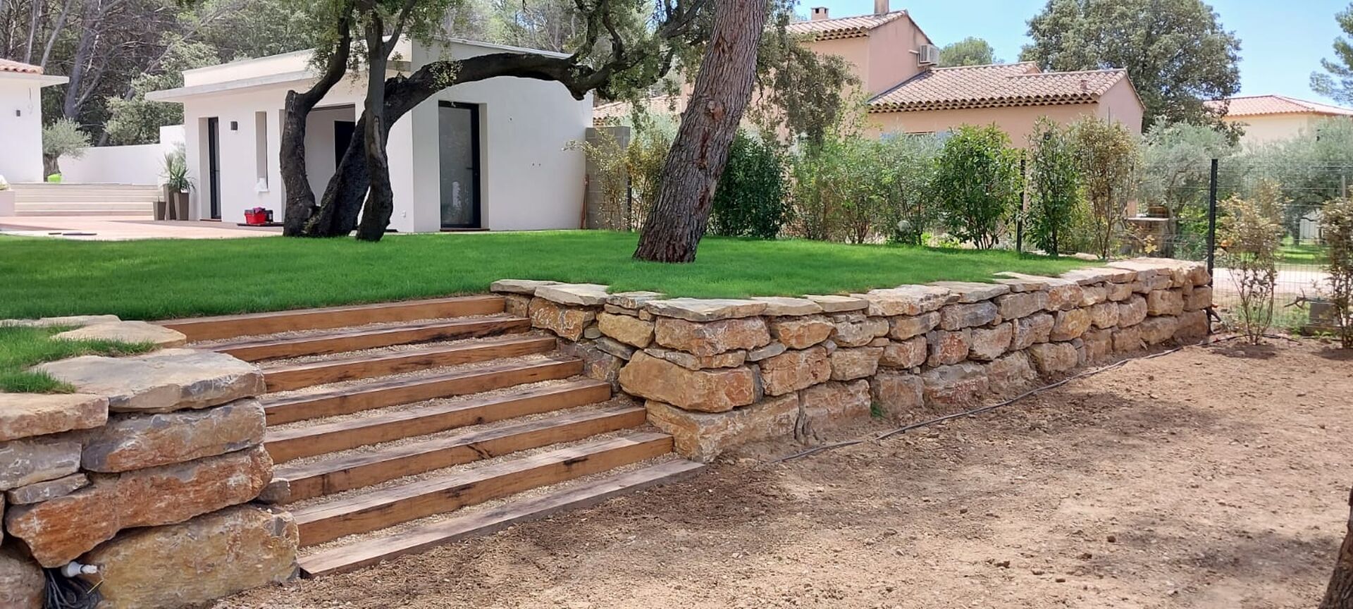 AEP Aménagement Entretien Paysager, votre paysagiste spécialiste de la création, l’aménagement et l’entretien de vos espaces verts, situé à Berre l’Etang, vous aide à choisir entre l’enrochement et le mur de soutènement à Aix en Provence.