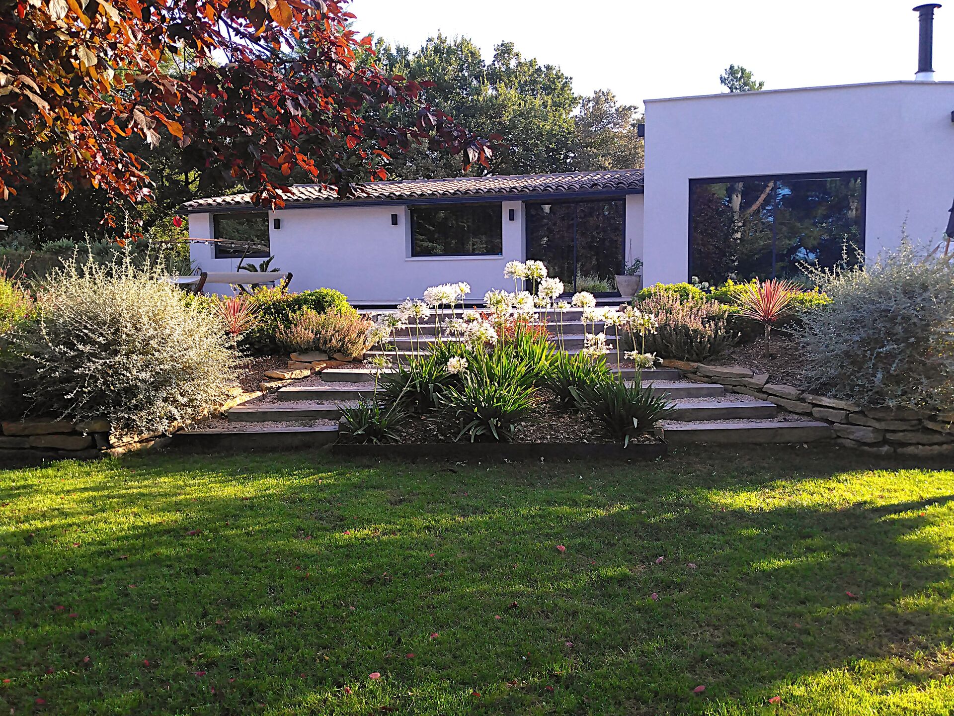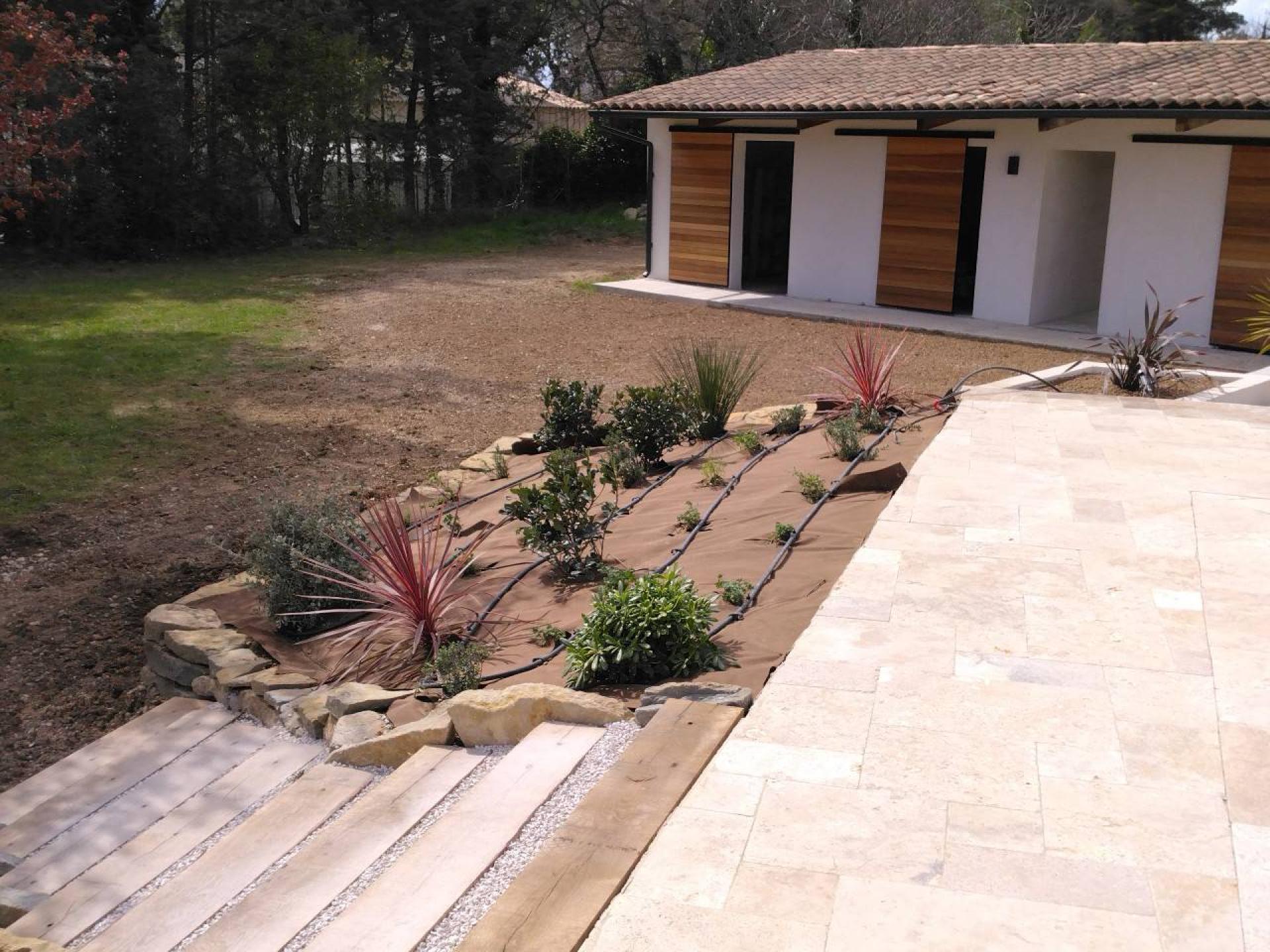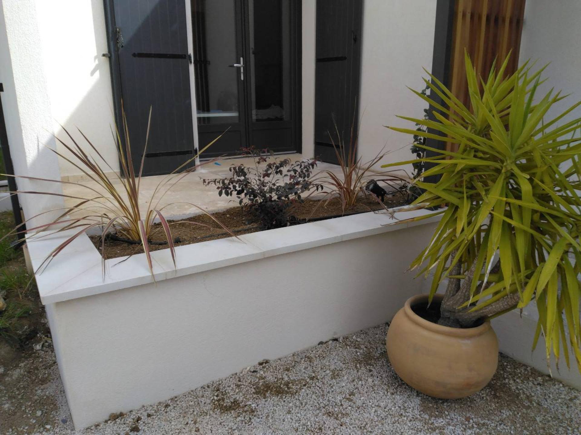 Nous avons par la suite rempli de terre de jardinières maçonnées et planté une végétation méditerranéenne.