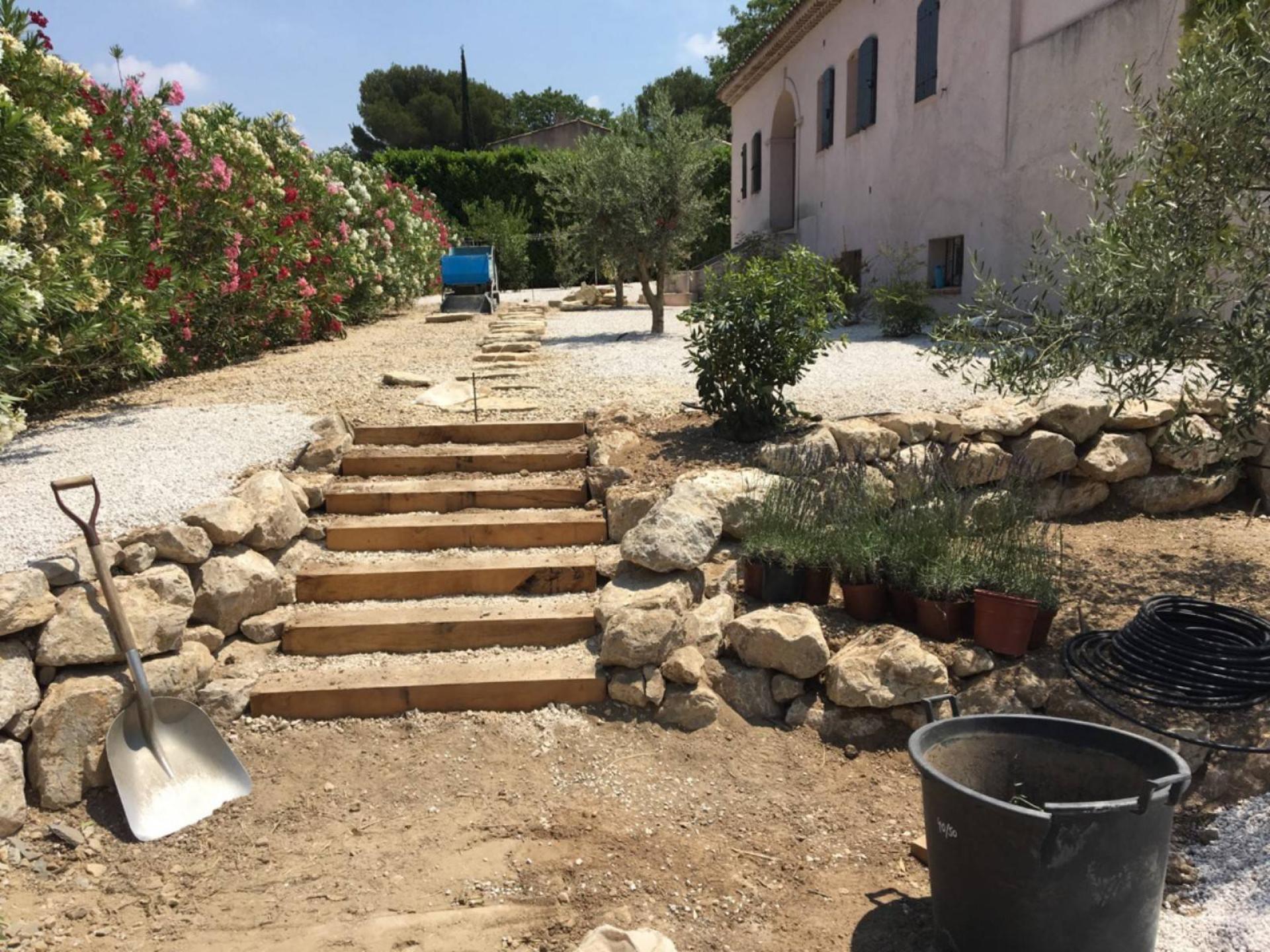 AEP Aménagement Entretien Paysager, votre spécialiste de l’aménagement et l’entretien de vos espaces verts, la pose de clôture et l’installation de terrasse en bois et composite situé à l’Etang de Berre, vous présente l’une de ses dernières réalisations : le réaménagement d’une entrée de villa avec terrassement de l’accès à Eguilles